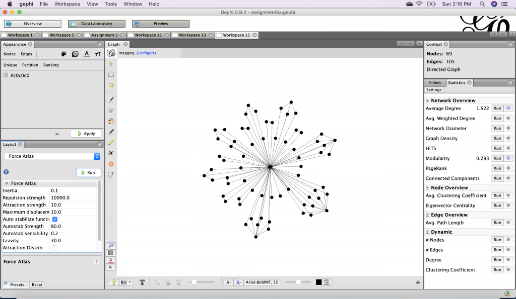 In Gephi the image produced using Force Atlas has a striking resemblance to a compass. I noticed this because there is a compass on the cover of The Cartographer Tries to Map a Way to Zion