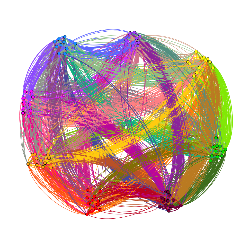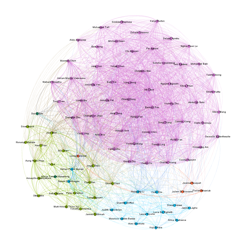 My first foray into the project was the Gephi component, which I was most interested in. My decision to look at Bucknell as an option was mainly because I knew students from my high school who went to Bucknell. To that end, I set out to connect people who came from the same high school, and gave them more weight if they belonged to the same year. After building the edge table, I used the Radial Axis Layout, grouping the nodes by class year. This produced a visualization that, in my opinion, created a pretty strong argument that the high school that an international student went to plays a significant part in deciding if future students apply. Of course, this dataset only contains the number of students who are enrolled, and not those that apply, and thus, this factor might have meaning if looked at in a college application context rather than in a college enrollment context.