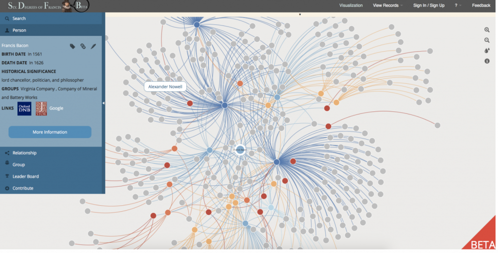 Networks show relationships between everything and everyone. Lima believes that “network visualization can be a remarkable discovery tool, able to translate, structural complexity into perceptible visual insights aimed at a clearer understanding. It is through its pictorial representation and interactive analysis that modern network visualization gives life to many structures hidden from human perception” (Lima 79). Using Gephi to analyze a dataset, one is able to take a group of people, and highlight the connections within the group through their common attributes. The goal of using Gephi in this way is to create a network visualization that clarifies the group and bring new information to light, that is difficult to find on a spreadsheet.